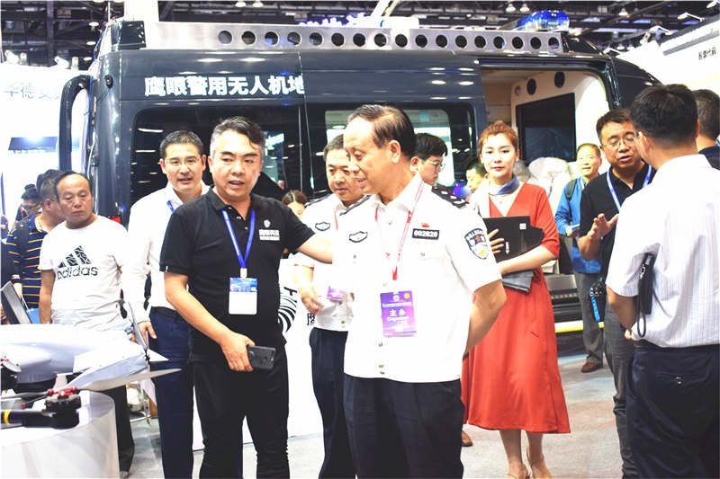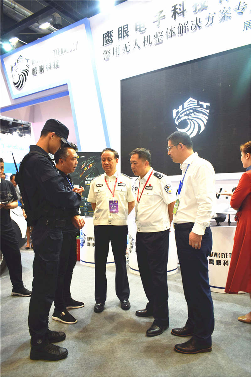 5月15日,公安部黨委委員、部長助理王儉,公安部警航辦副主任劉道林、施錦等領(lǐng)導(dǎo)先后蒞臨鷹眼科技展位視察指導(dǎo),讓鷹眼展臺蓬蓽生輝。