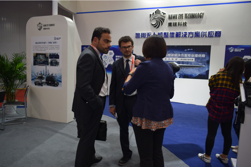 鷹眼科技工作人員為深圳無人機行業(yè)協(xié)會楊金才會長講解鷹眼無人機及其方案,受到楊會長的高度肯定。展會現(xiàn)場,大量國外賓客也紛紛駐足參觀鷹眼警用無人機,并對鷹眼科技的專業(yè)化無人機解決方案給予了高度評價。