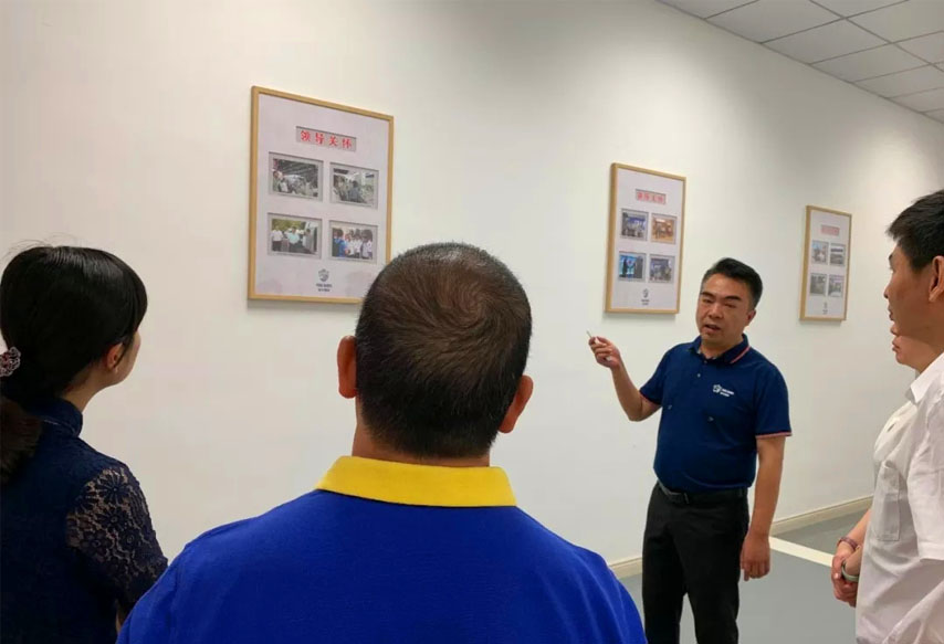 參觀過程中,基地常務(wù)副總經(jīng)理胡成浩引導(dǎo)各領(lǐng)導(dǎo)分別參觀公司的榮譽專利展示墻、整體規(guī)劃布局圖并做詳細(xì)講解。