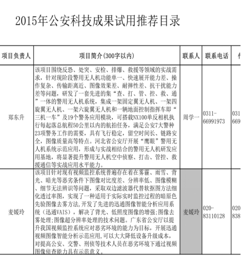 鷹眼無人機(jī)是2015年公安科技成果試用推薦目錄無人機(jī)項(xiàng)目