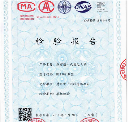 鷹眼無人機(jī)已通過公安部檢測(cè)中心檢測(cè)