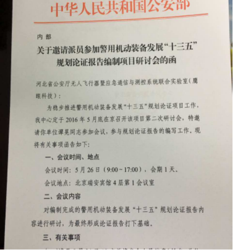 鷹眼科技是參與起草警用無人機(jī)十三五發(fā)展規(guī)劃的單位