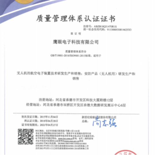 鷹眼科技已通過質(zhì)量管理體系認(rèn)證、環(huán)境管理體系認(rèn)證和職業(yè)健康安全管理體系認(rèn)證