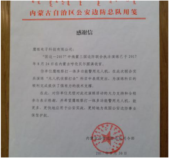 鷹眼科技多次參與演習(xí)及實(shí)戰(zhàn),受到相關(guān)單位書面感謝