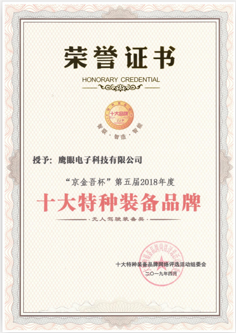 眾望所歸!鷹眼科技斬獲2018年度“十大特種裝備品牌”!