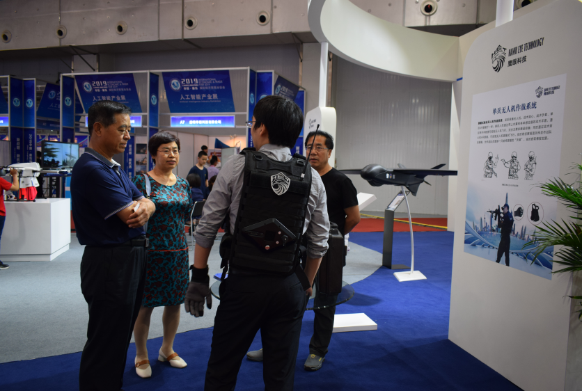 在本屆經(jīng)洽會上,人工智能展區(qū)可謂是大會上的一大亮點。鷹眼科技攜專業(yè)級警用無人機整體解決方案驚艷亮相人工智能展區(qū),專業(yè)級警用空中飛行平臺、多功能空中掛載設(shè)備、地面控制平臺,受到參會觀眾的高度關(guān)注與贊揚。其中,鷹眼科技自主研發(fā)的穿戴式單兵無人機作戰(zhàn)系統(tǒng)更是受到了多家媒體的熱烈采訪。